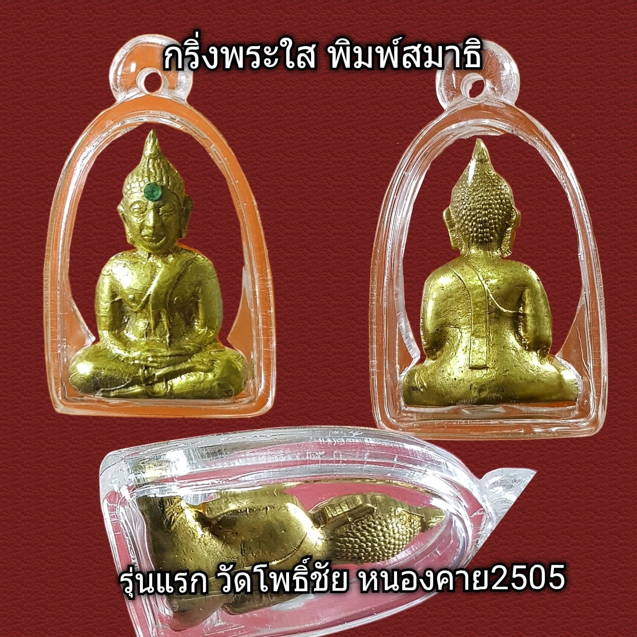 พระกริ่งรุ่นแรก หลวงพ่อพระใส พิมพ์สมาธิ วัดโพธิ์ชัย หนองคาย สภาพสวยเดิม พลอยเขียวหายาก