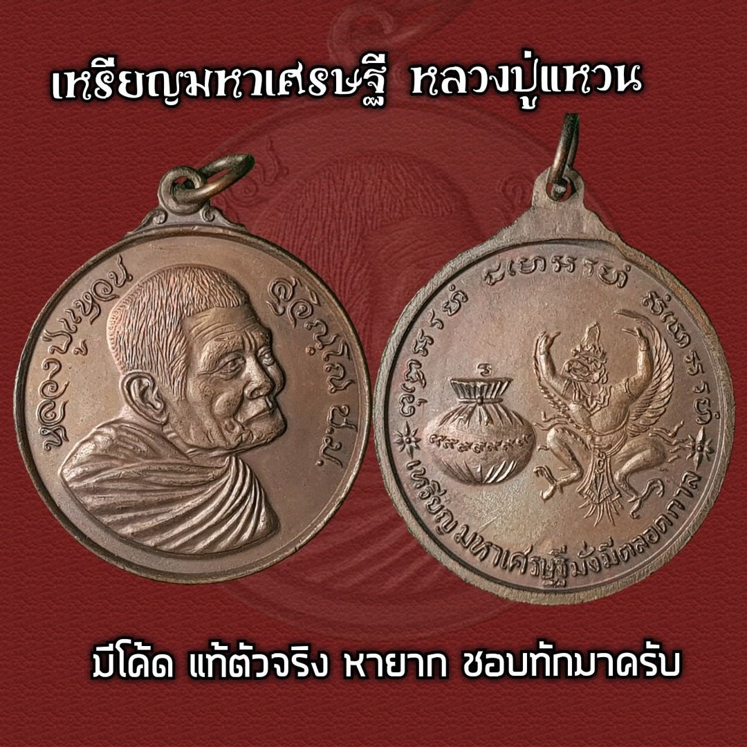 เหรียญมหาเศรษฐี หลวงปู่แหวน วัดดอยแม่ปั๋ง เชียงใหม่ สภาพสวยประกวด