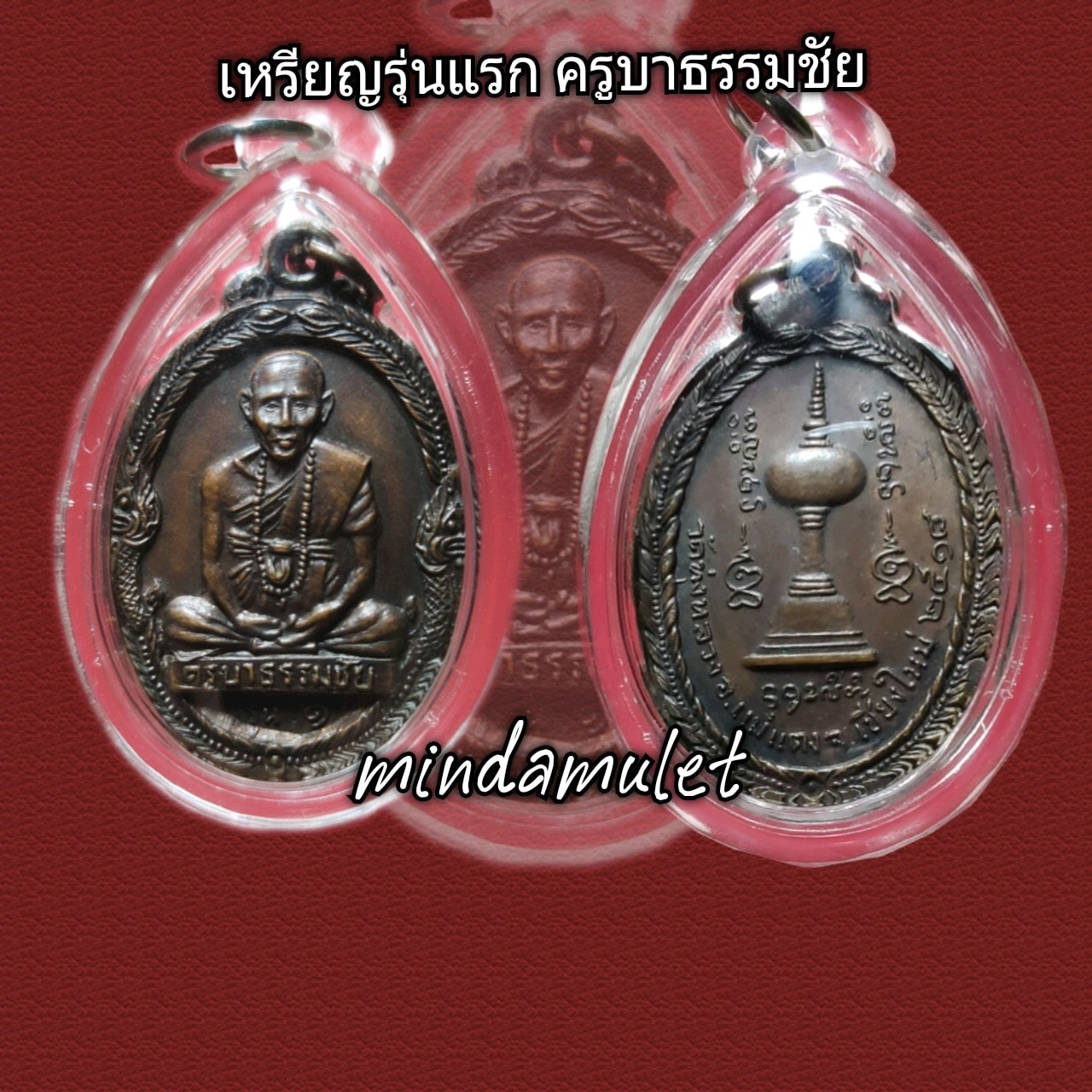 เหรียญรุ่นแรก ครูบาธรรมชัย วัดทุ่งหลวง เชียงใหม่ ปี2518 สภาพสวยมากพร้อมเลี่ยมบูชา